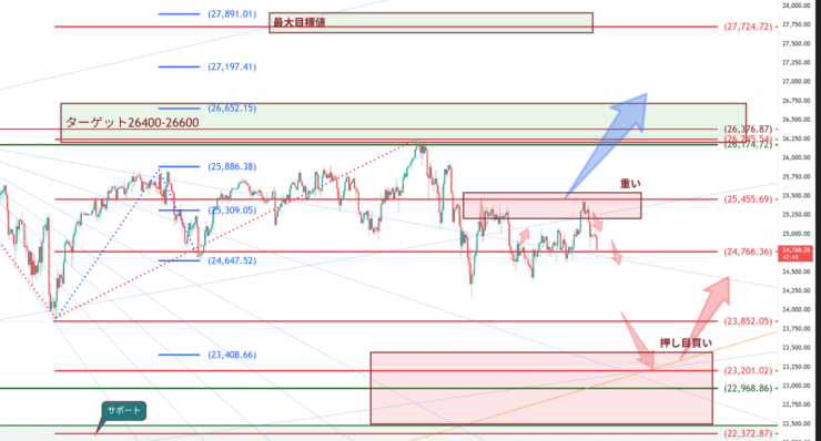 FEで考えたなら、24766を割れたら下。割れなければ下落しても戻る。