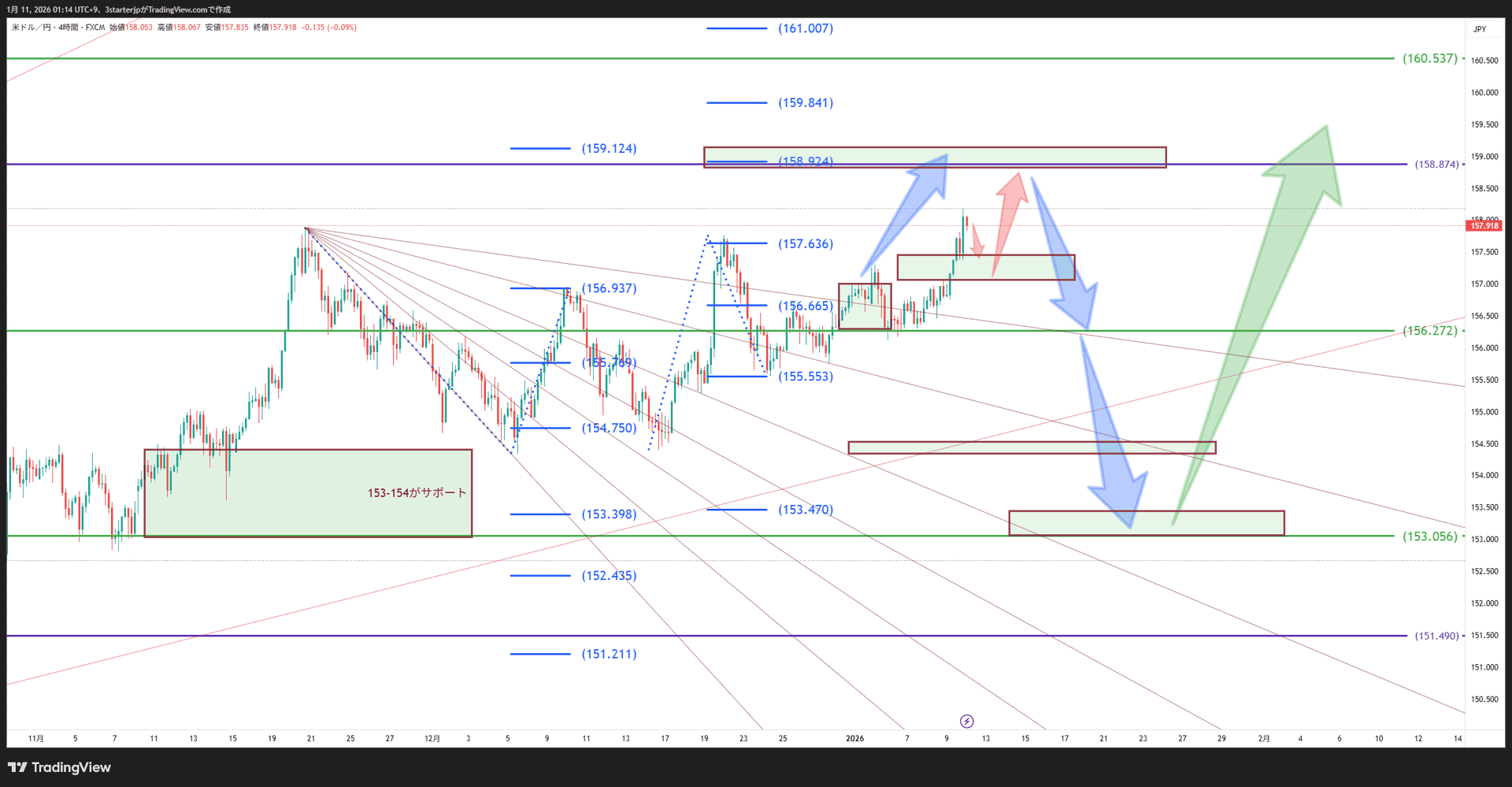 ※153はあくまでもチャート上の押し目として強い意味を持つ値位置です。それほどの力があるかは不明。