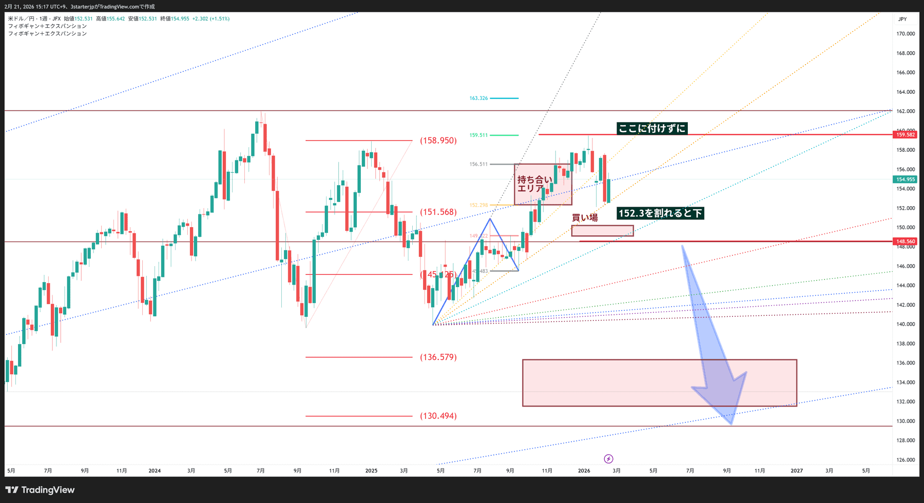 で、私が先週言っていたように「155円に戻ると良いな」と。