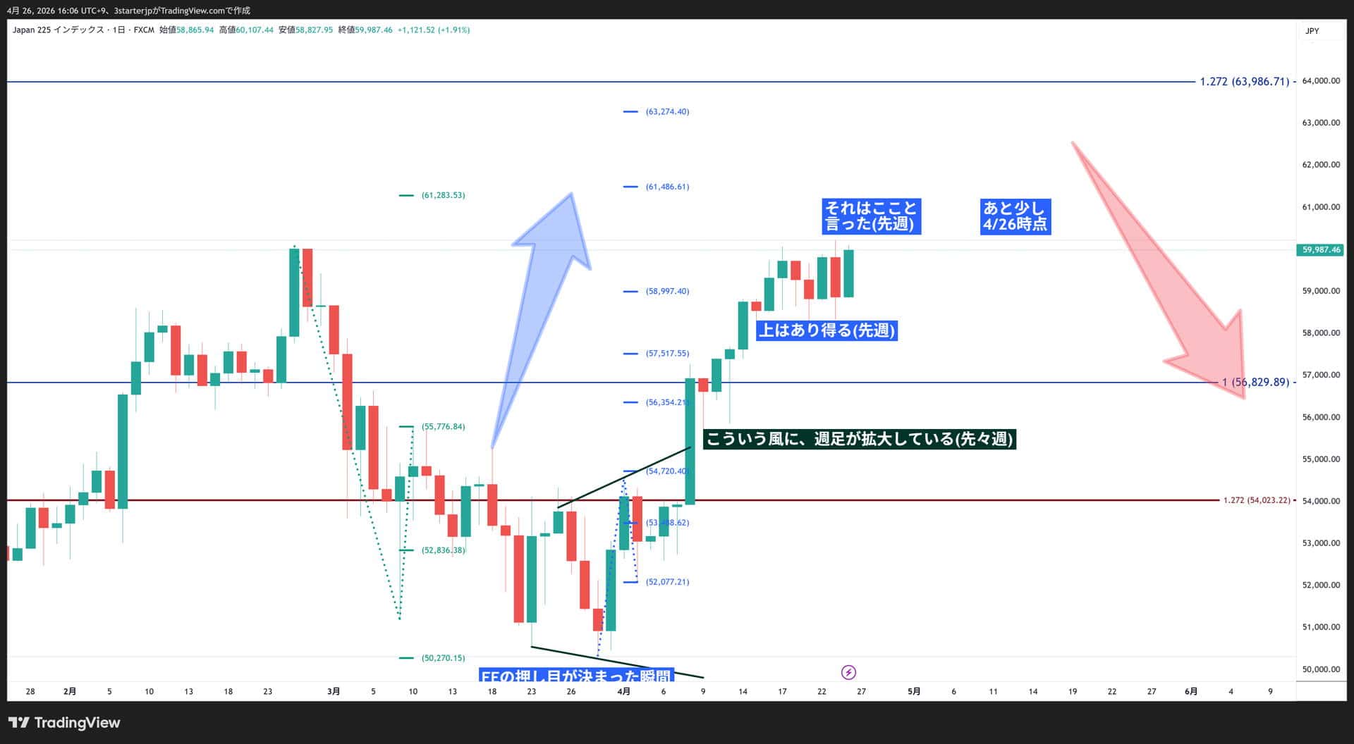 ゴールデンウイーク前という事で、最後の勝負どころでしょうか。今日は日経平均を中心にお届けします!