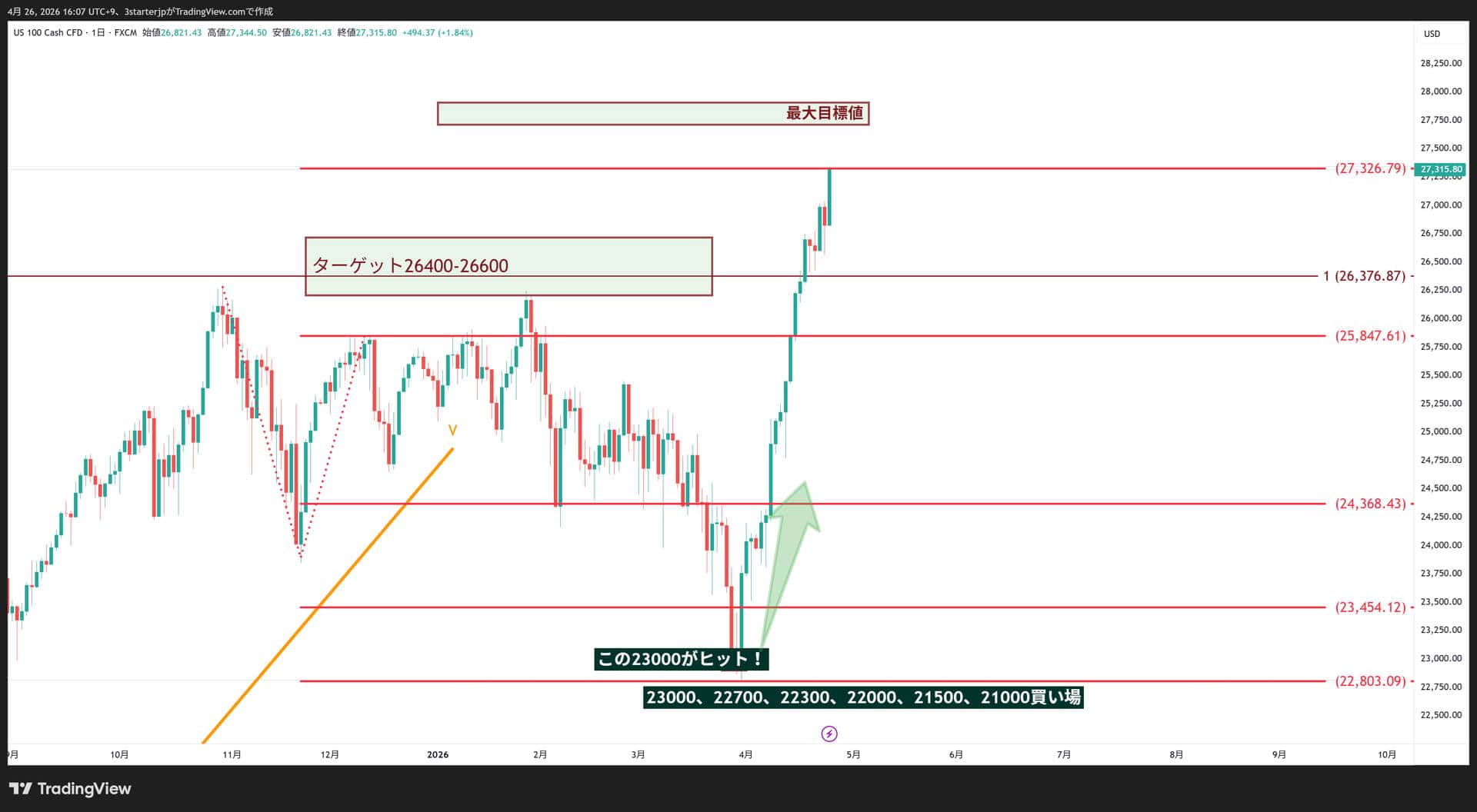 ナスダックはすでにちょっとずつ売り始めていますが、多分28000ポイントです。