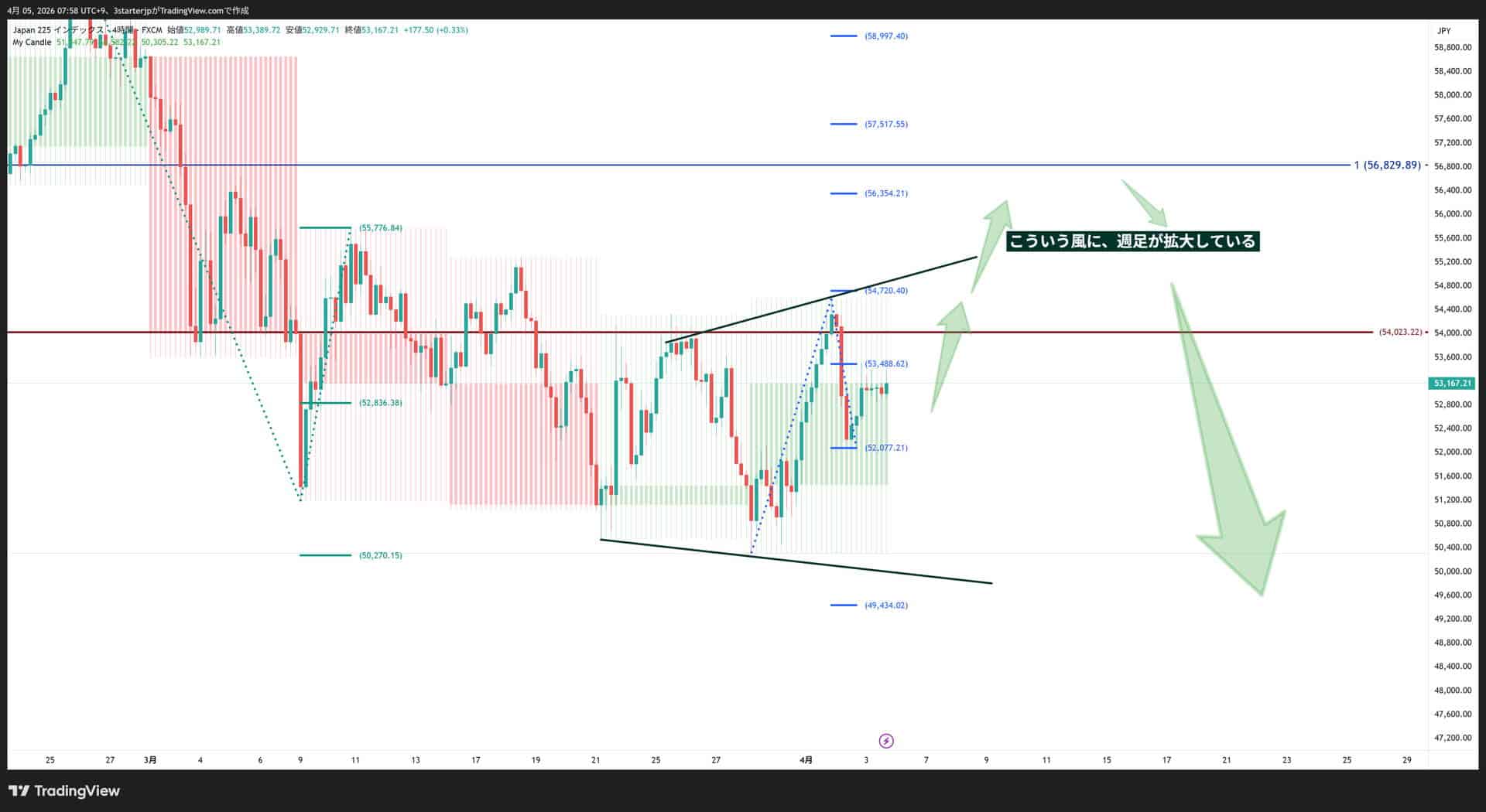 詳しくはTradingviewの投稿をご覧ください。→「日経の週足がおもろいよ。」タイトルは同じ