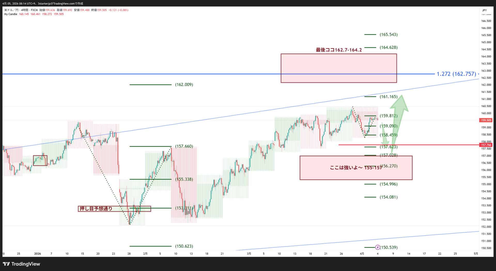 今週は週末分析の通りになれば良いですが、トランプ大統領の発言や戦況により右往左往しているので、十分注意してください。